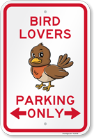 Funny Animal Signs: Bird Lovers Parking Only Sign K2-6758 Learn More...