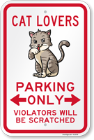 Funny Animal Signs: Cat Lovers Parking Only Sign K2-6759 Learn More...
