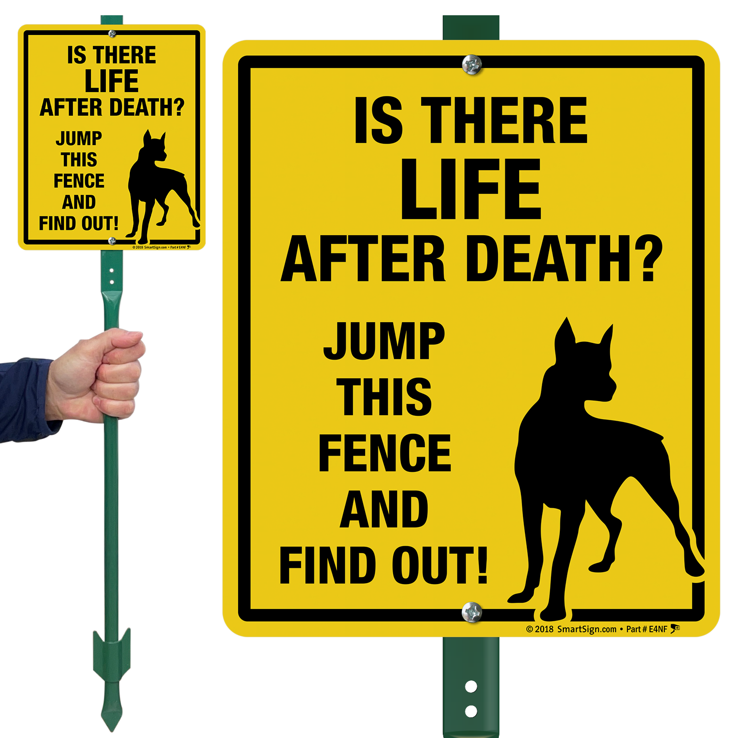 Funny Dog Warning LawnBoss® Sign & Stake Kit: Is There Life After Death? Jump Fence And Find Out! K2-5209