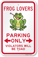 Funny Animal Signs: Frog Lovers Parking Only Sign K2-6764 Learn More...