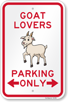 Funny Animal Signs: Goat Lovers Parking Only Sign K2-6765 Learn More...