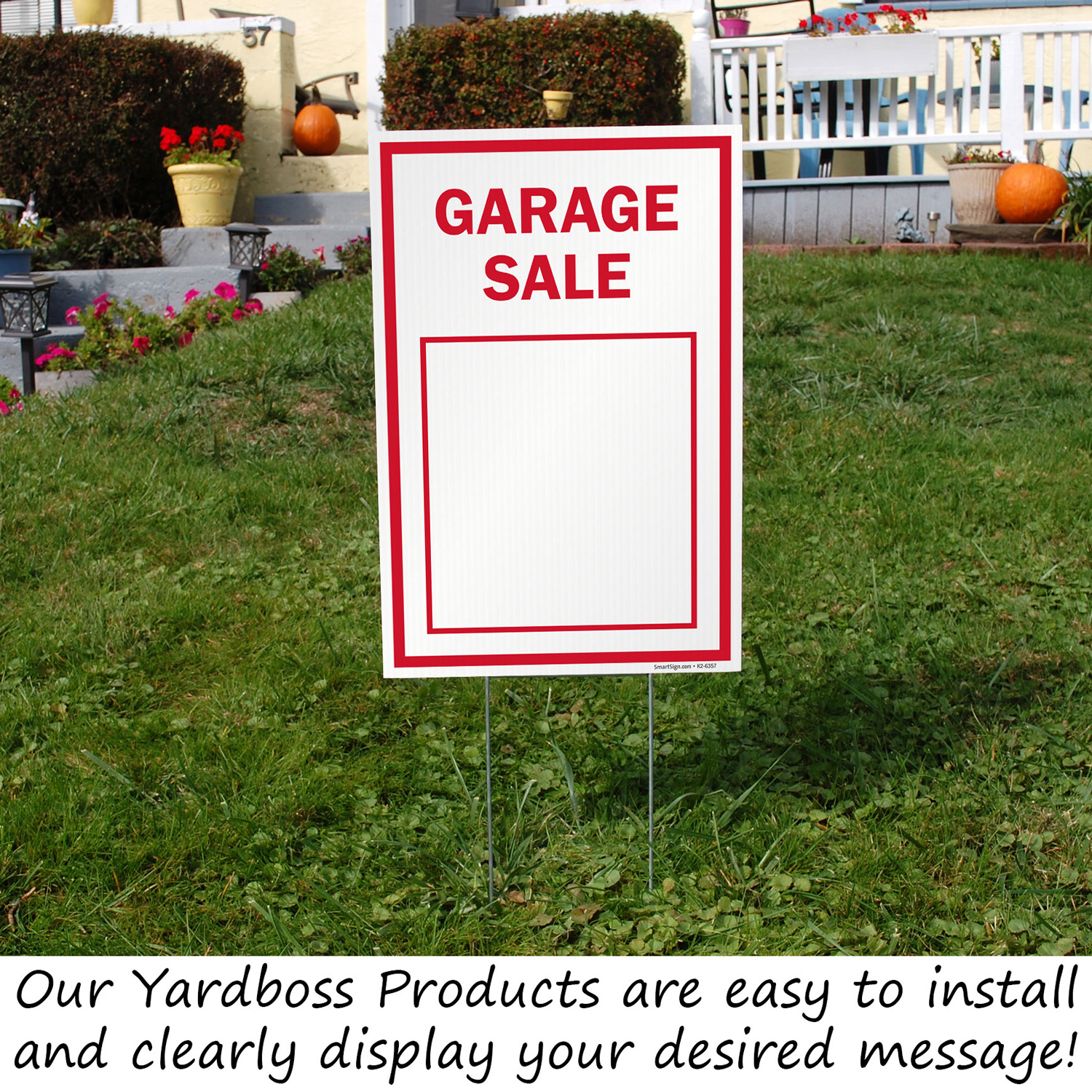 Need an affordable Garage Sale sign? Look no further! Simply slide the H-stake into the corrugated sign and step into the lawn for quick and easy installation!