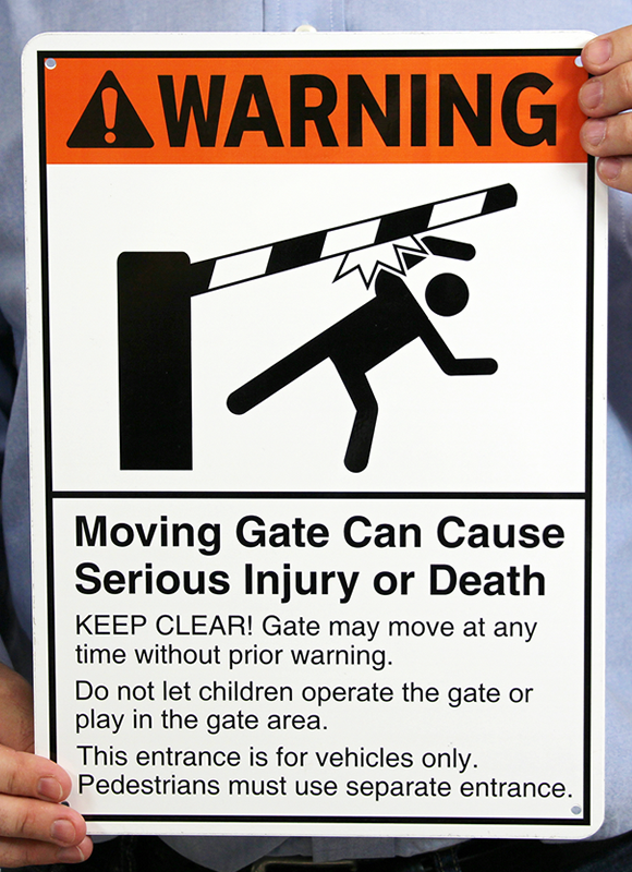 Toll Barrier Gate Warning Sign: Moving Gate Can Cause Serious Injury Or Death (with Lowering Gate Boom Symbol) Learn More...