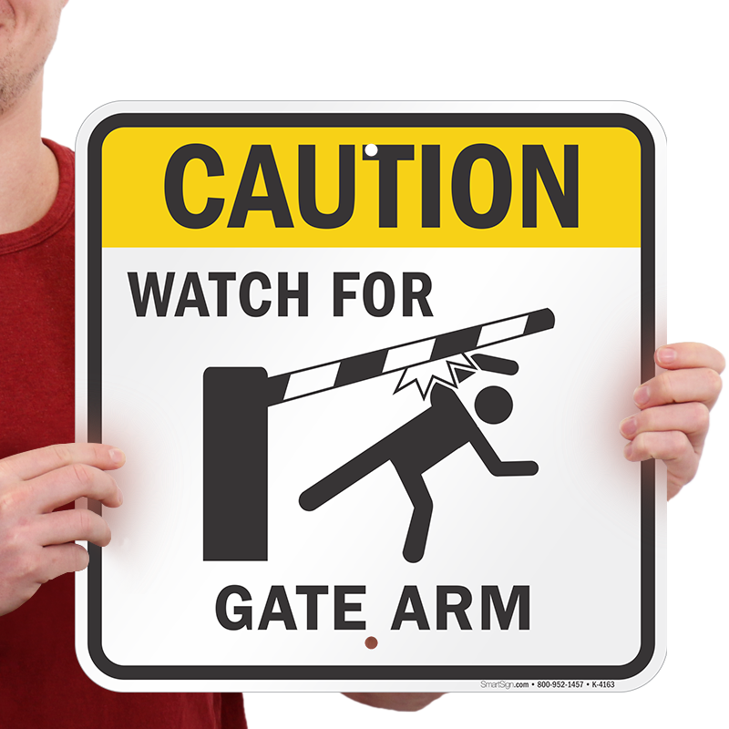 Warn your visitors of potential danger. Decrease liability with a Caution / Gate Arm sign.