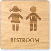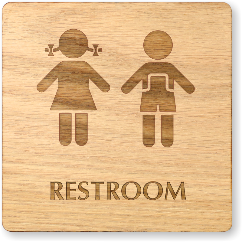 Mark unisex bathrooms for children with this simple yet fun wooden sign (with girl and boy symbol).