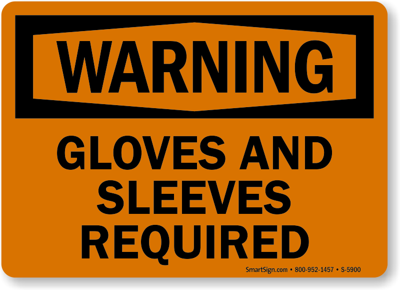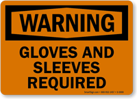 This OSHA Warning Sign enforces your PPE Rule. Warn workers to stay out of harm's way by wearing gloves and sleeves.