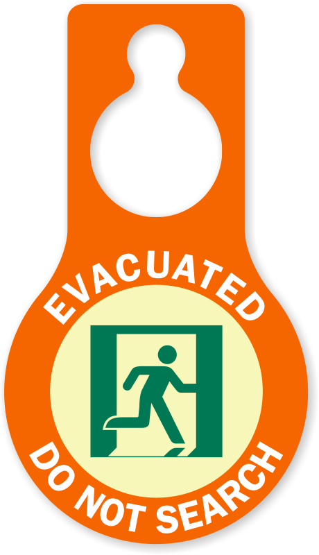 Pear Shaped Glow Plastic Door Hang Tag: Evacuated - Do Not Search (With Graphic) TG-1508