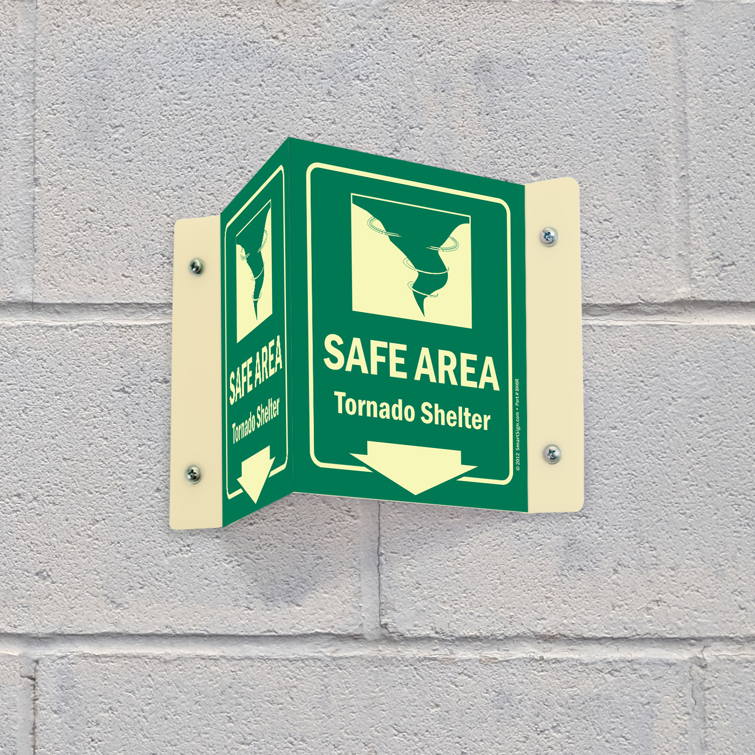 Install this Glow-in-Dark Projecting Emergency Shelter Area Sign zeroing in on a rescue area. Signs can save lives timely.