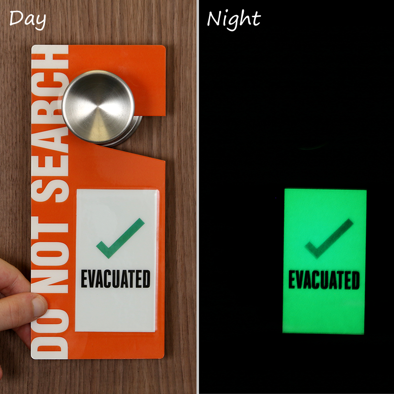 2-Sided Glow Plastic Door Hang Tag: Evacuated - Do Not Search (With Check Mark Symbol) TG-1510