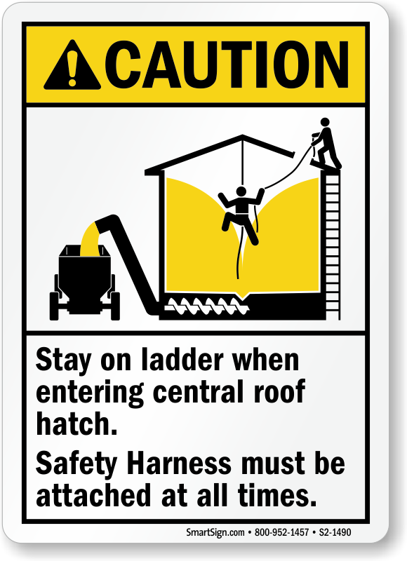Make your words count! Use a Safety Harness Must Be Attached At All Times Sign, and send across a reminder to the workers.