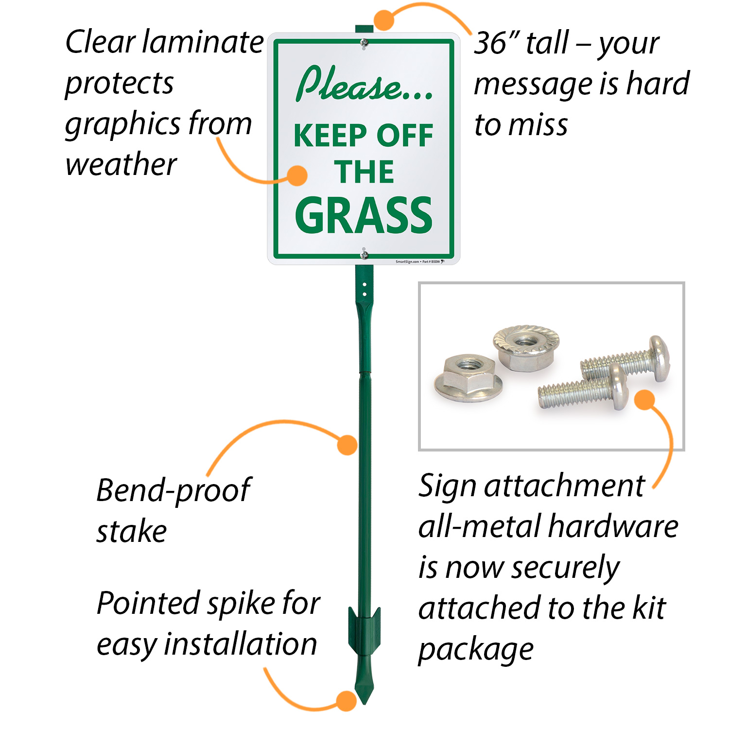 Size: 12" x 10" Material Type: Aluminum Sign & 3' Tall Stake Verified PurchasePlease Keep Off The Grass