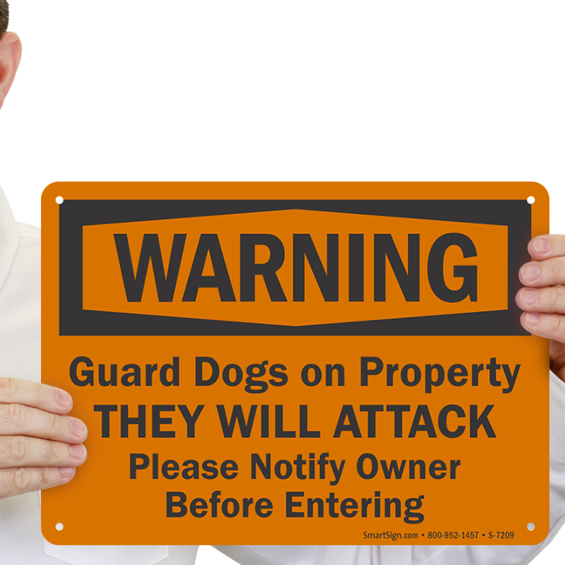 Guard Dog Warning Sign: Guard Dogs On Property They Will Attack Please Notify Owner Before Entering S-7209