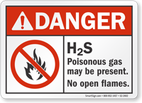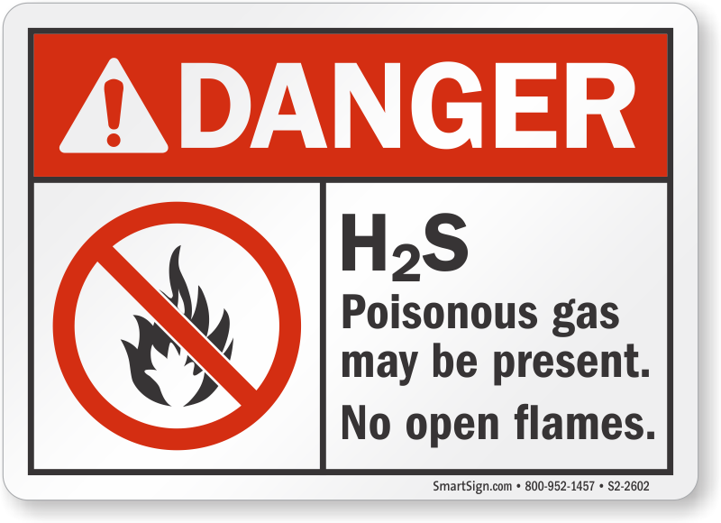 ANSI Danger Sign: H2S Poisonous Gas May Be Present, No Open Flames S2-2602