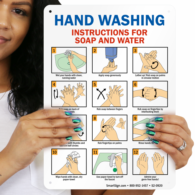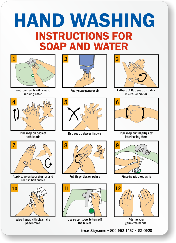 Easy to read and follow the instructions. Be careful placing on your mirrors or glass, because the labels are VERY sticky. They can also create bubbles, so start at one end and smooth it out as you go. The instructions are clear and a good reminder to people on how to properly wash hands. It does not however, offer a time frame as to how long to wash - generally accepted as 20 seconds or more.