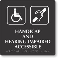 12" x 12" TactileTouchâ„¢ Braille Sign: Handicap And Hearing Impaired Accessible (with Accessible Pictograms, Tactile Touch Braille) SE-5313