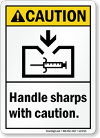 ANSI Caution Sign: Handle Sharps With Caution (With Medical Sharps Graphic) S2-0725