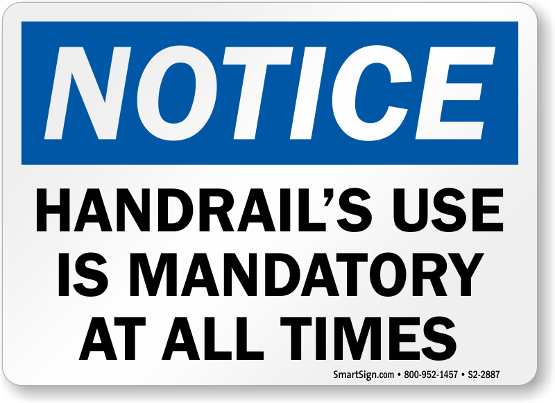 Handrails are build for safety on stairs. Encourage the use of handrails with this OSHA Notice Sign.