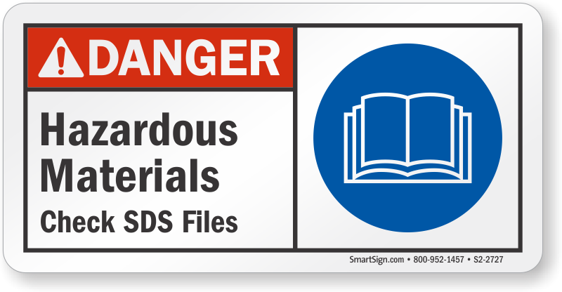 ANSI Danger Sign: Hazardous Materials, Check SDS Files