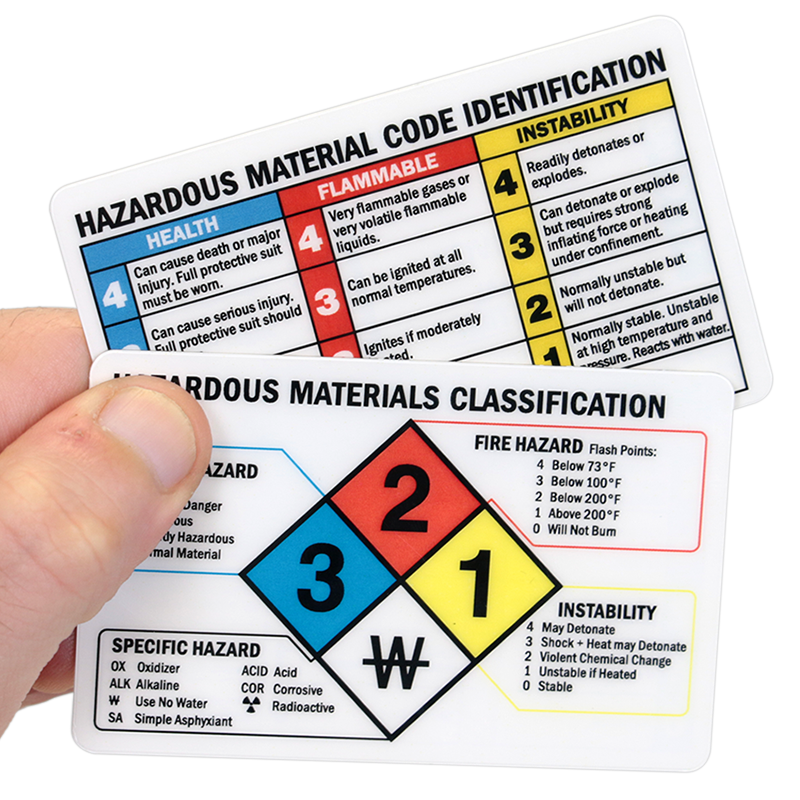 NFPA guide wallet card is an easy referral to various hazard ratings and helps workers figure out which hazards are posed by a hazardous material in your facility. The plastic card fits easily in pocket or wallet. The NFPA diamond and color format is comprehensive and user-friendly.