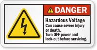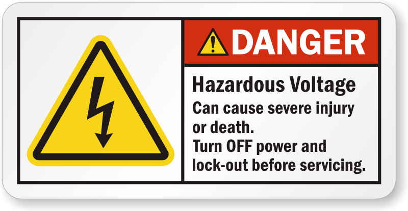 Sometimes layout of a label matters! Use this horizontal ANSI label to warn workers against hazardous voltage.