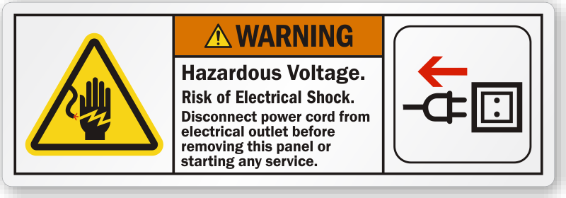 Ensure workers indulge in safe practices. Apply this label and remind them to disconnect power cords before they start servicing the machine.