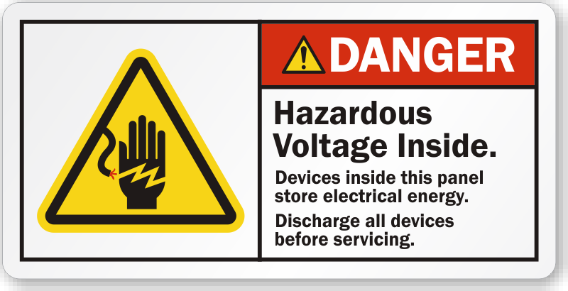 Make sure workers are aware of the areas with electrical hazards and take safety precautions. Use this label to inform them about voltage hazards.