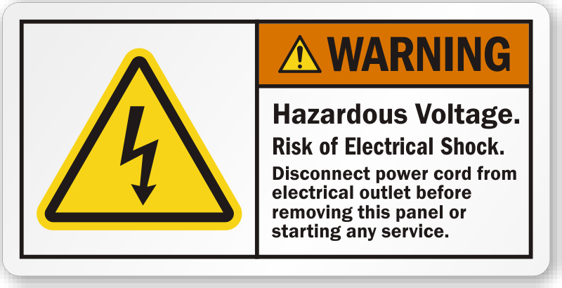 Mark the hazardous voltage with this label and warn employees to stay cautious while they operate electrical machinery.