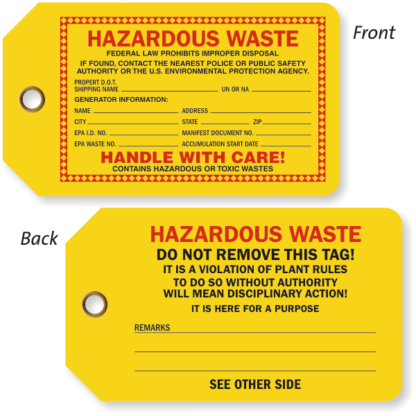 Affix this Hazardous Material Tag to the containers with hazardous waste elements and convey an important safety message to your workers.