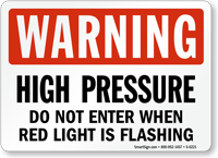 Highlight High Pressure area and caution all workers not to enter the danger zone when red light is flashing with this bold Warning Sign.