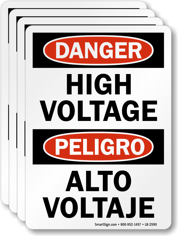 Important safety messages should be understood by one and all. Give away a 'high voltage' warning in English and Spanish.