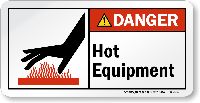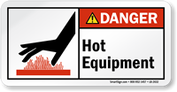 Hot Equipment should be marked by this ANSI Danger Label to prevent burn hazards.