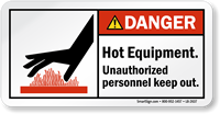 This ANSI Danger sign will warn people of the hot equipment minimizing the risk of burn injuries and restrict the entry of unauthorized personnel.