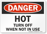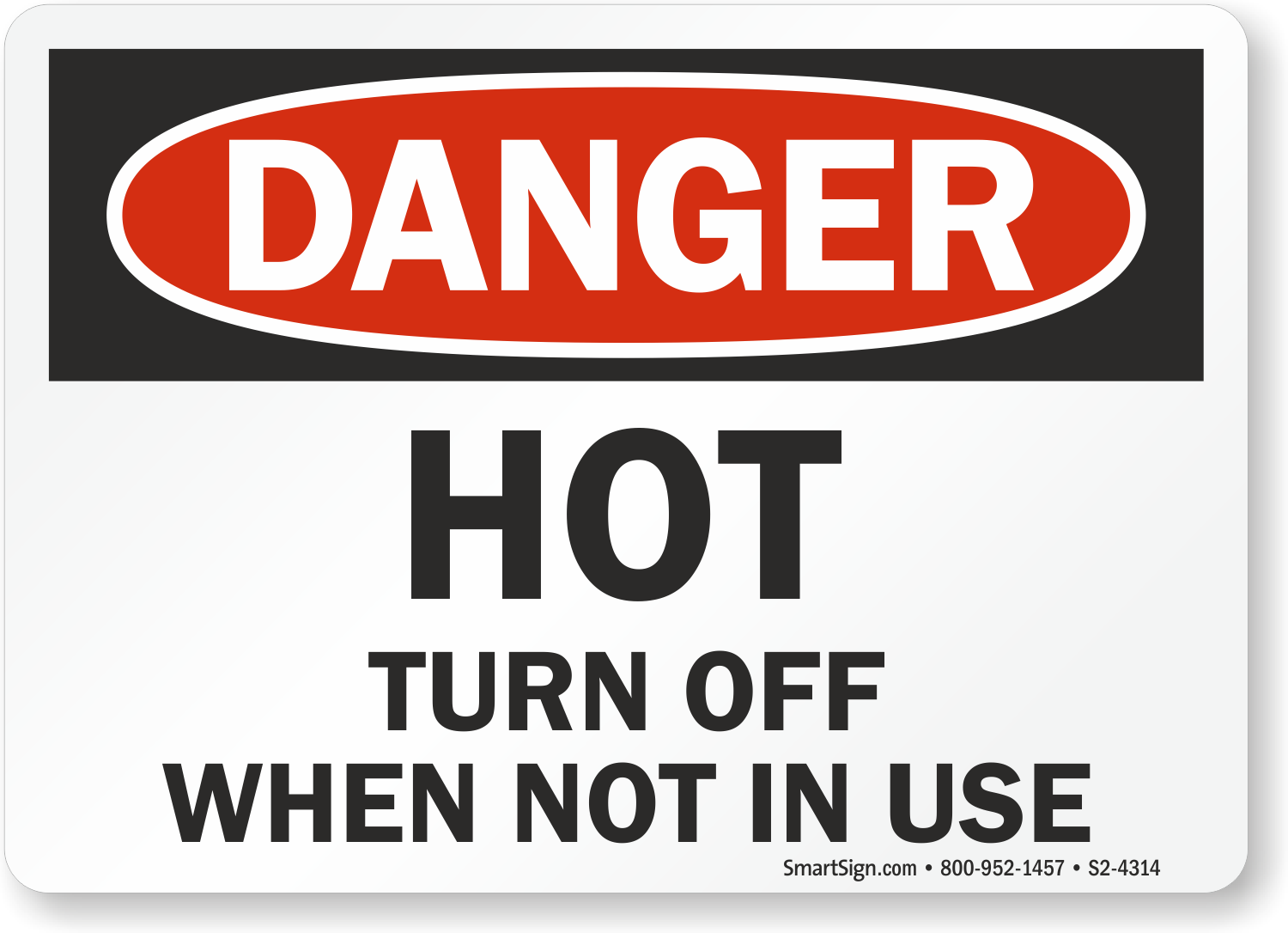 OSHA Danger Sign: Hot - Turn Off, When Not In Use S2-4314