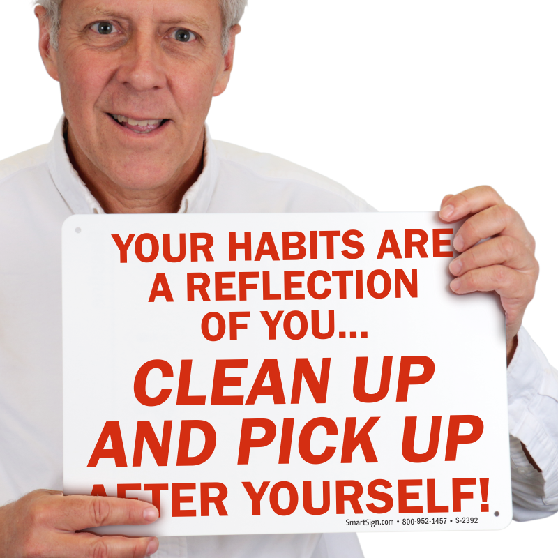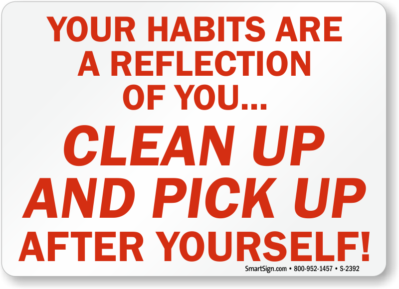 Use a "your habits are a reflection of you, clean up and pick up after yourself!" sign. Signs are proven to make a difference.