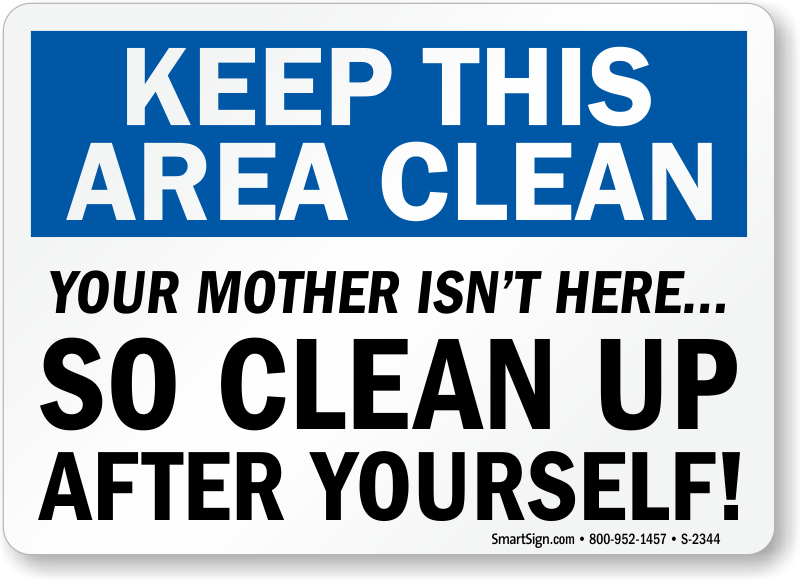 Lead by example - show how much you care about safety. This humorous sign will get your point across and your employees cleaning up after themselves.