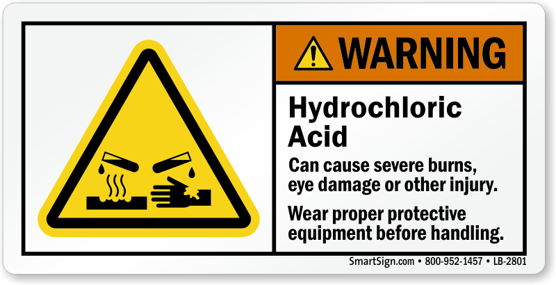 ANSI Warning Safety Label: Hydrochloric Acid Can Cause Severe Burns, Eye Damage Or Other Injury Wear Proper Protective Equipment Before Handling (With Corrosive Symbol) LB-2801