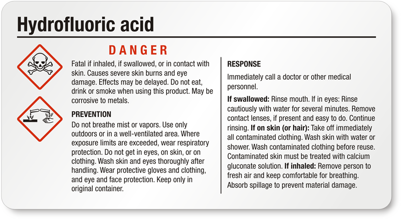 Emphasize on safety and comply with Globally Harmonized System of Classification and Labeling of Chemicals with this Hydrofluoric Acid GHS Label.