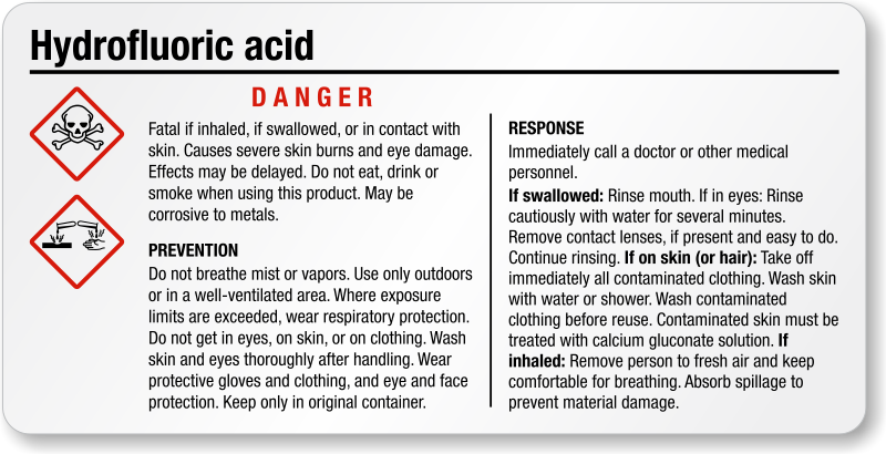 Use fully compliant and effective Hydrofluoric Acid GHS Chemical Label and decrease the risk of injuries in your facility.