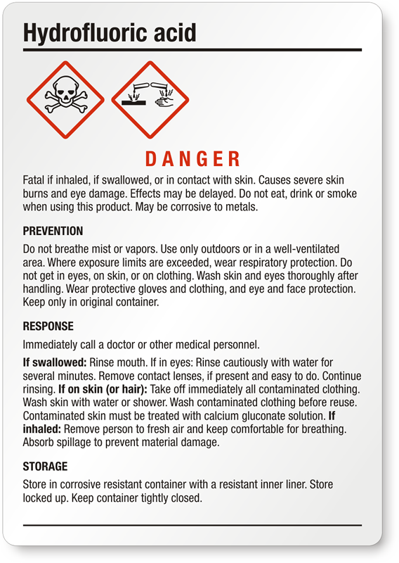 Use fully compliant and effective Hydrofluoric Acid GHS Chemical Label and decrease the risk of injuries in your facility.