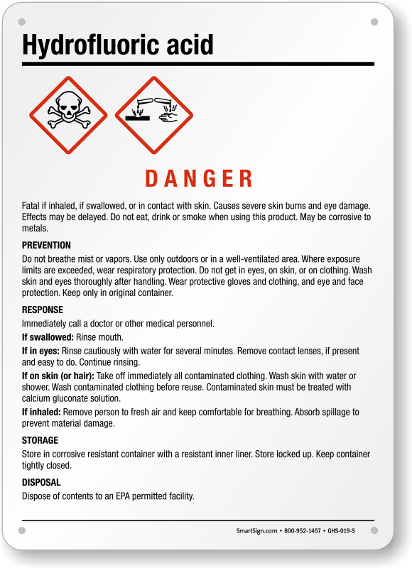 Emphasize on safety and comply with Globally Harmonized System of Classification and Labeling of Chemicals with this Hydrofluoric Acid GHS Sign.
