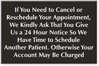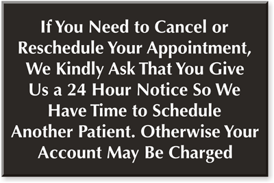 This 'Make sure to apply Give us 24 Hours to Schedule Another Patient' sign informs visitors about your hospital's policy.