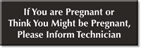 This easy-to-read 'If You Are Pregnant Or Think You Might Be Pregnant, Please Inform Technician' sign for doors or walls provide key information to pregnant females.