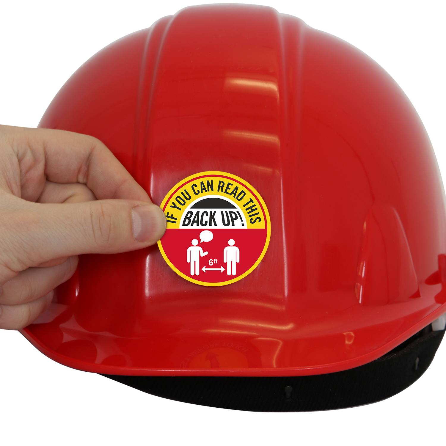 Make sure your crews are taken precautions to prevent the spread using hard hat stickers to remind them of social distancing protocol.