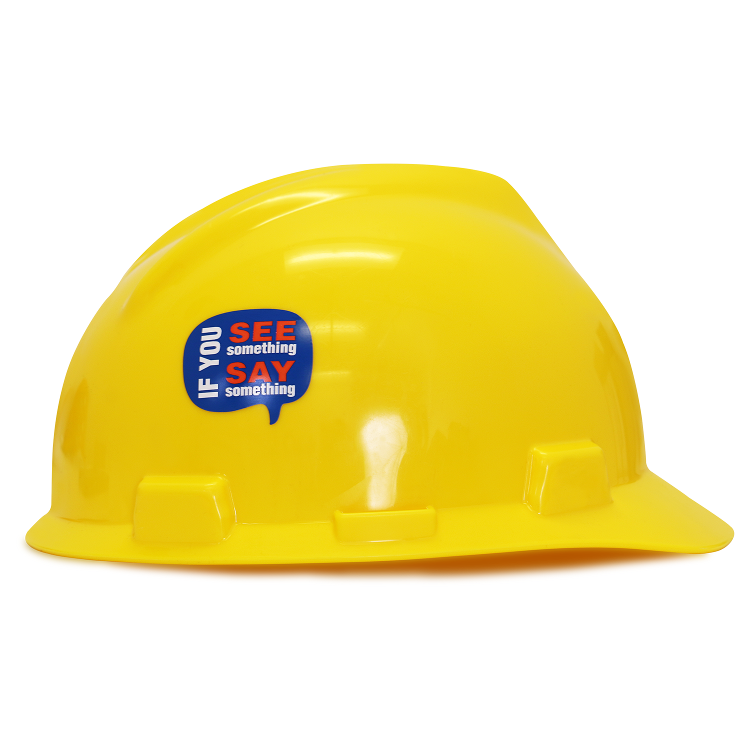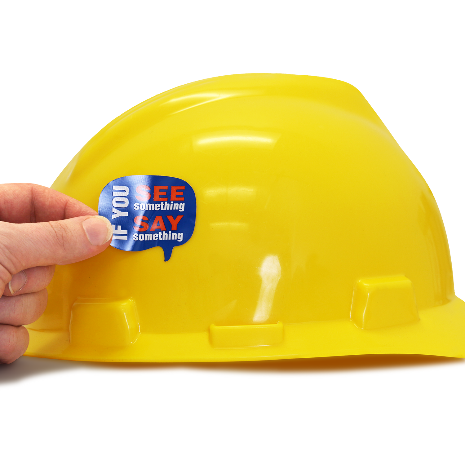 Encourage workers to speak up against unsafe practices in your organization with safety slogans like this on a hard hat.