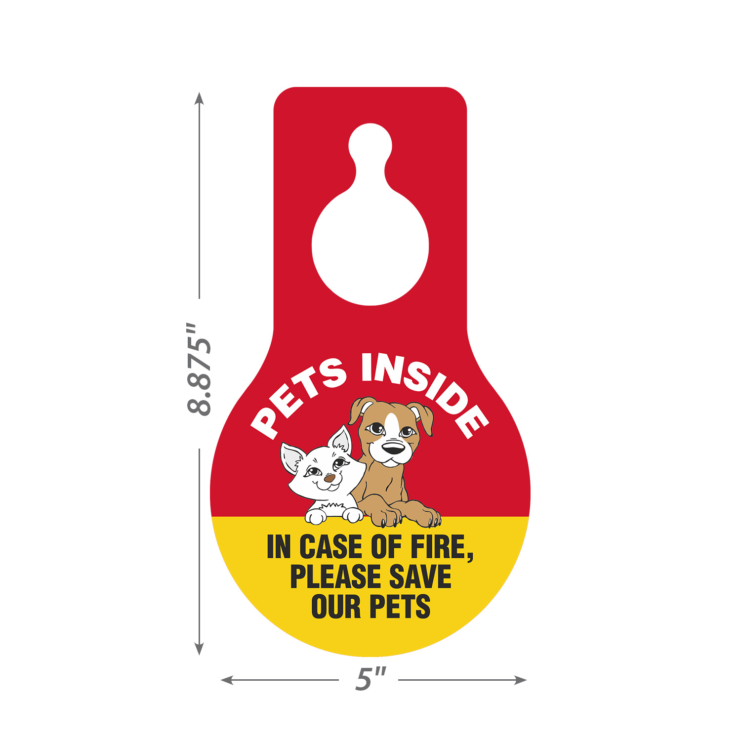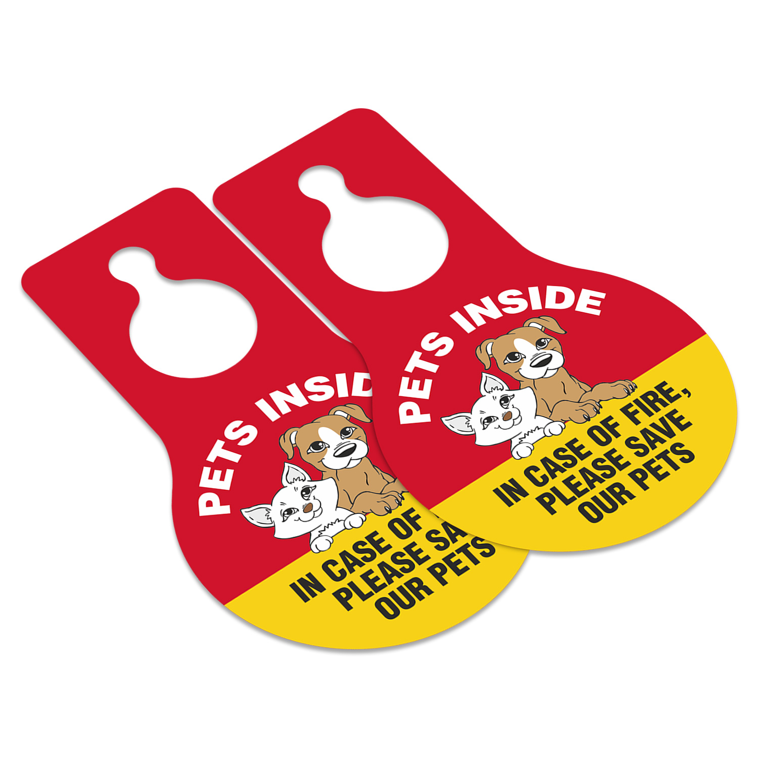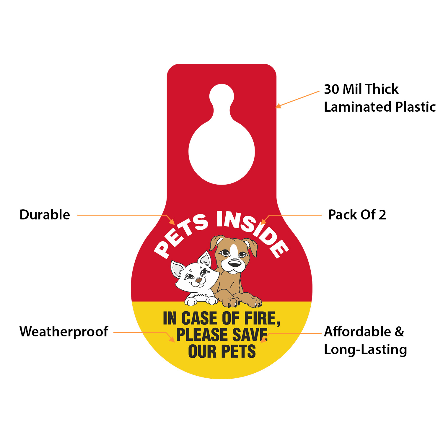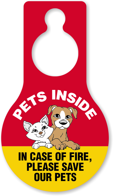 Pear Shaped Plastic Door Hang Tag: Pets Inside In Case Of Fire, Please Save Our Pets (with Pet Symbol) TG-1409