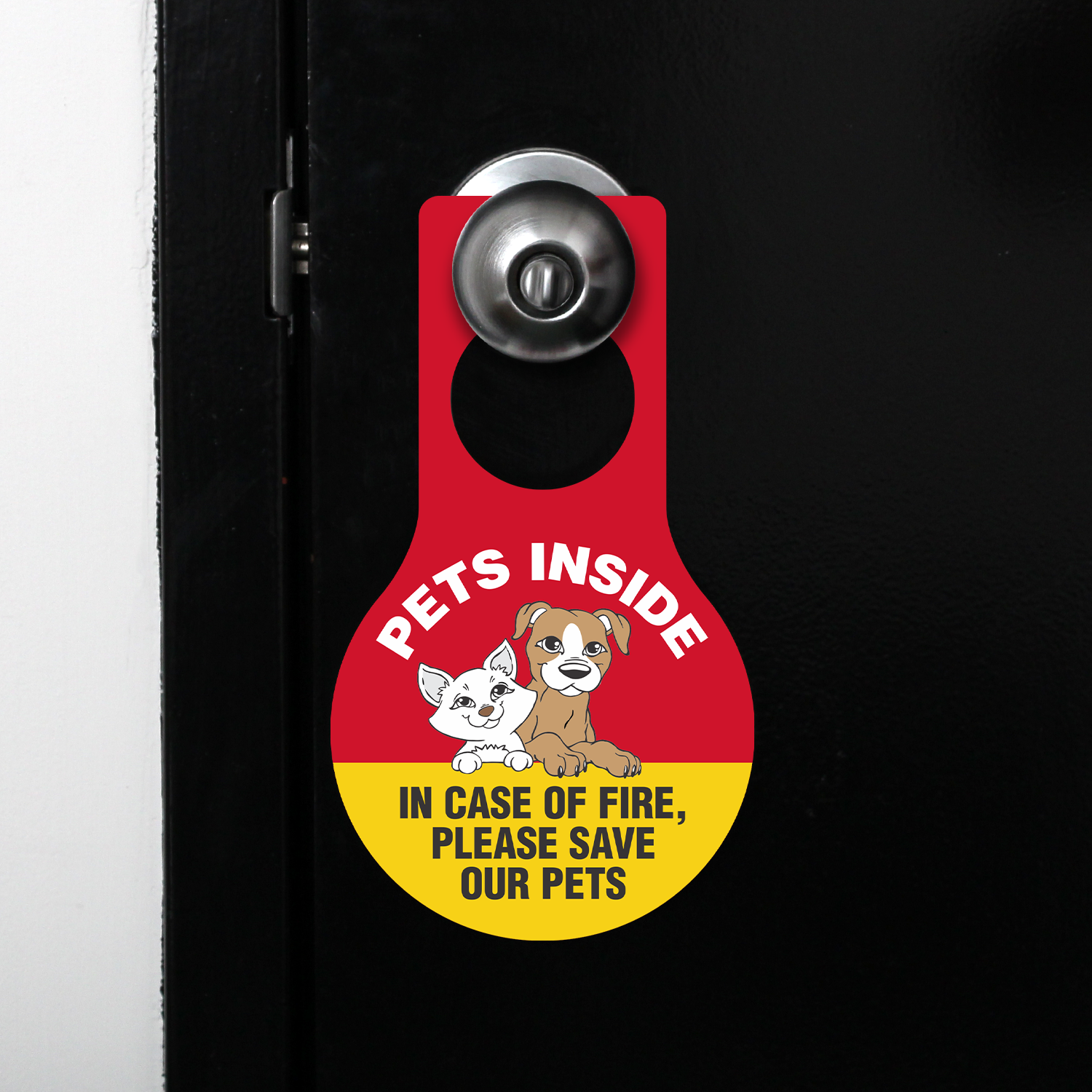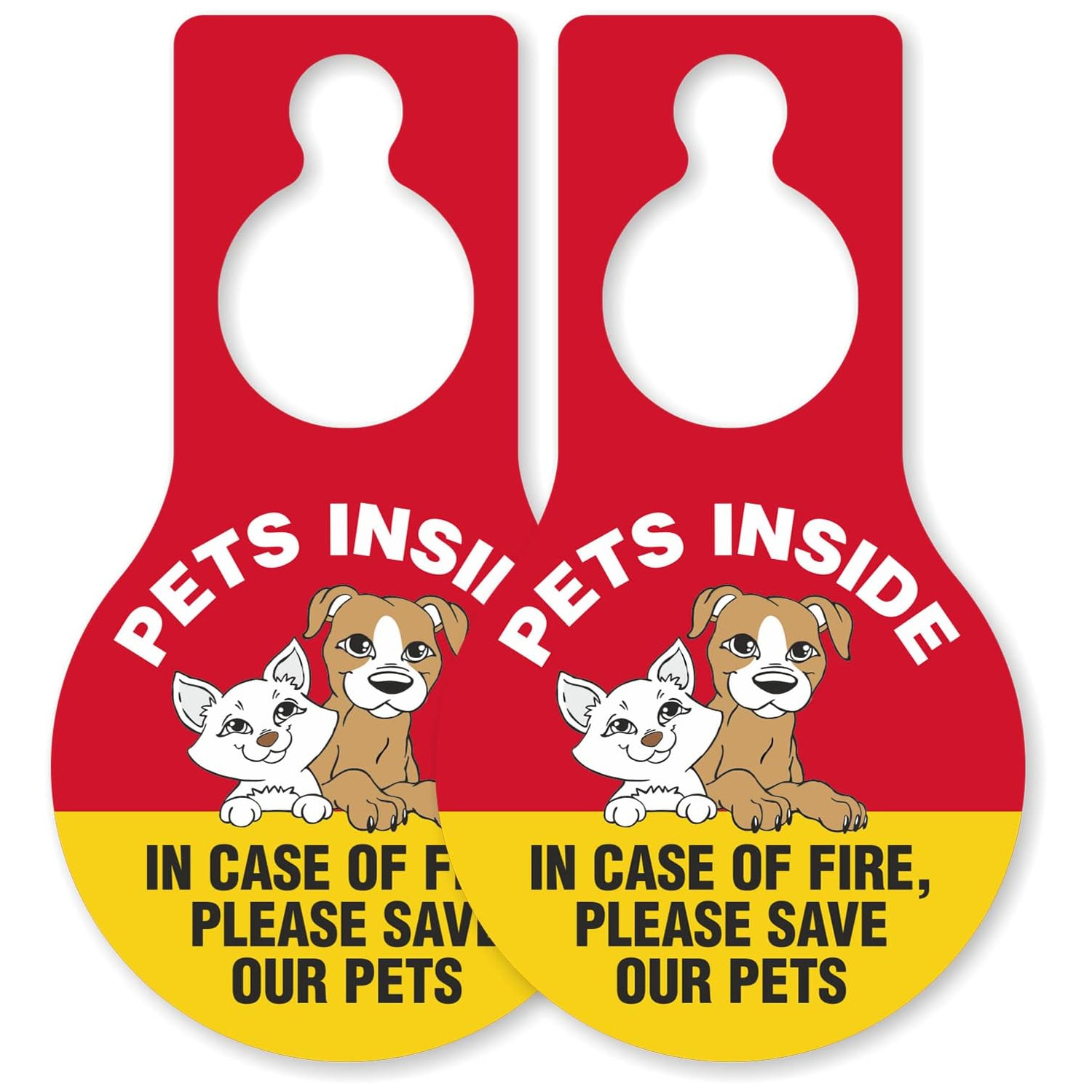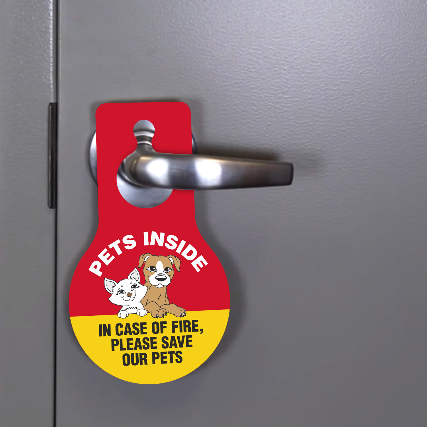 Pear Shaped Plastic Door Hang Tag: Pets Inside In Case Of Fire, Please Save Our Pets (with Pet Symbol) TG-1409