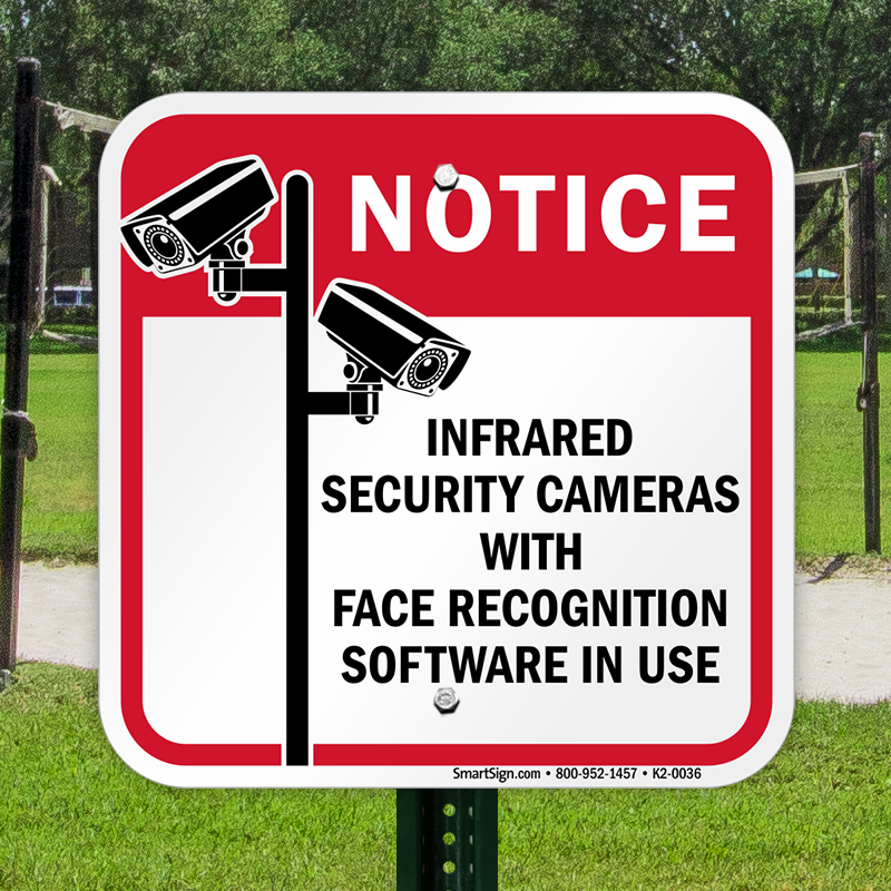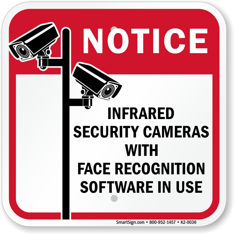 CCTV Security Notice Sign: Infrared Security Cameras With Face Recognition Software In Use K2-0036 Learn More...