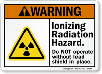 Warn workers that they are in an ionizing radiation hazard area. Post this sign to inform them that they have to wear a lead shield when operating.