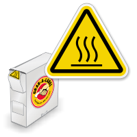 Communicate your safety message clearly with the ISO 3864-2 Warning Hazard Safety Labels. These Internationally ISO W017 Burn Hazard / Hot Surface Labels are the definitive way to post a safety message without words - as defined by ANSI Z535.4 and ISO 3864-2. Labels are available in rolls of 250 with a convenient label dispenser that is durable and mobile. Made of polyolefin, labels are waterproof, tear resistant, grease resistant, and endure shifts or changes in temperature. The laminate protects against scuffs, acids, chemicals and oils.