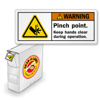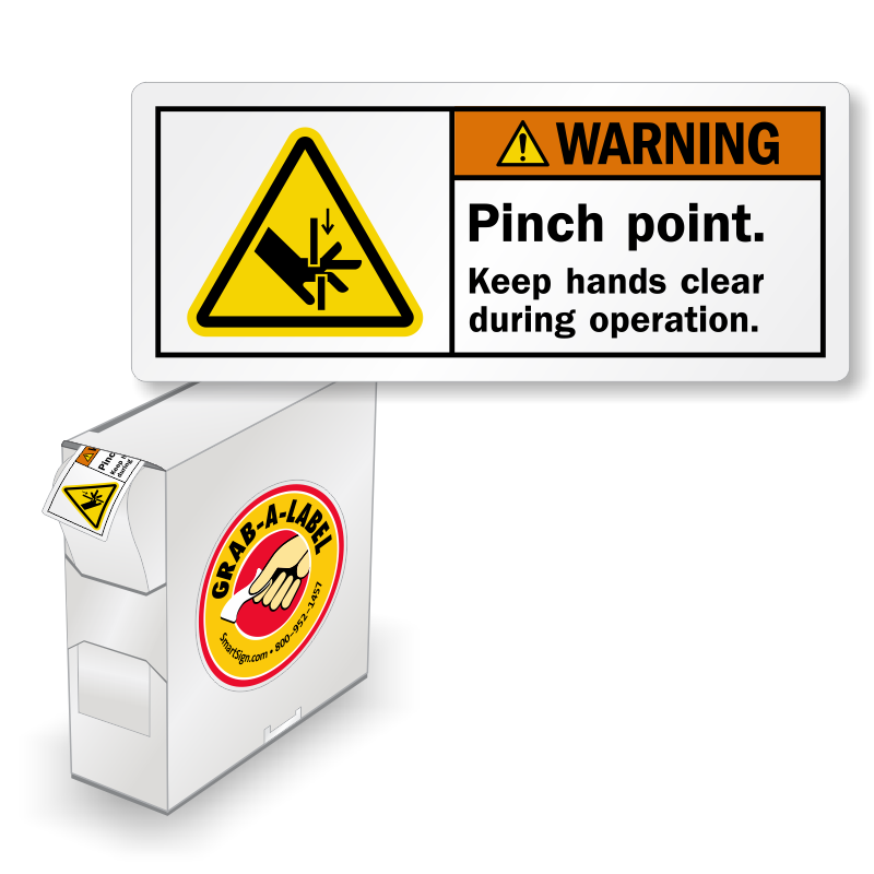 Safety should not be an afterthought. Make sure that you take advantage of every opportunity to remind workers about safe workplace tactics. ISO ANSI Warning Pinch Point Keep Hands Clear During Operation Labels make it easy to put powerful reminders in all the right places. Compare our labels with the competition and notice how our improved artwork and design give you a label with greater impact and more staying power.